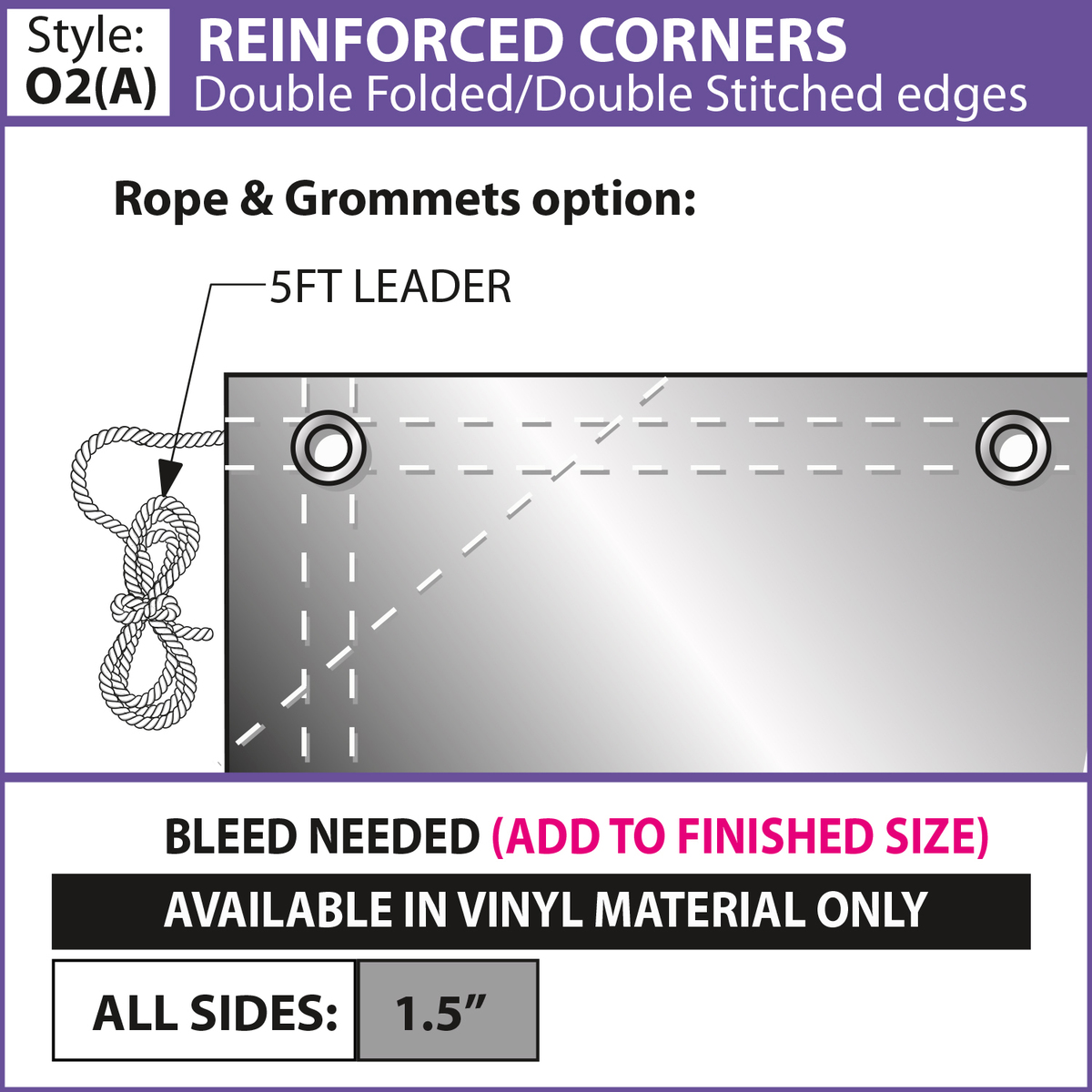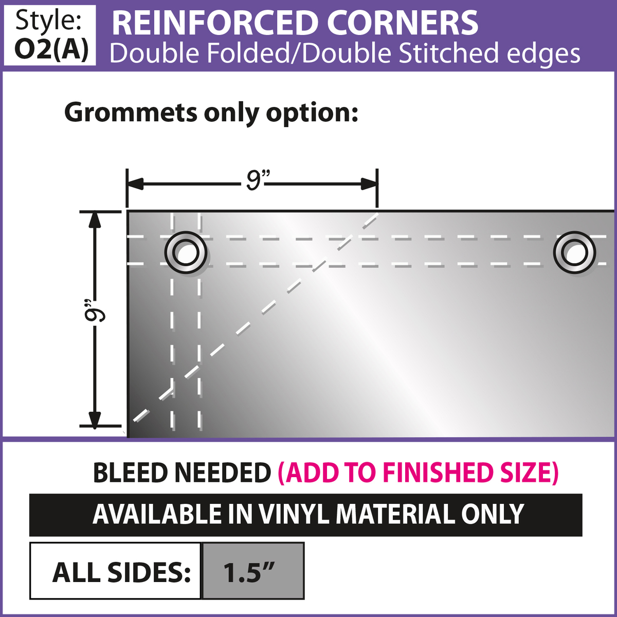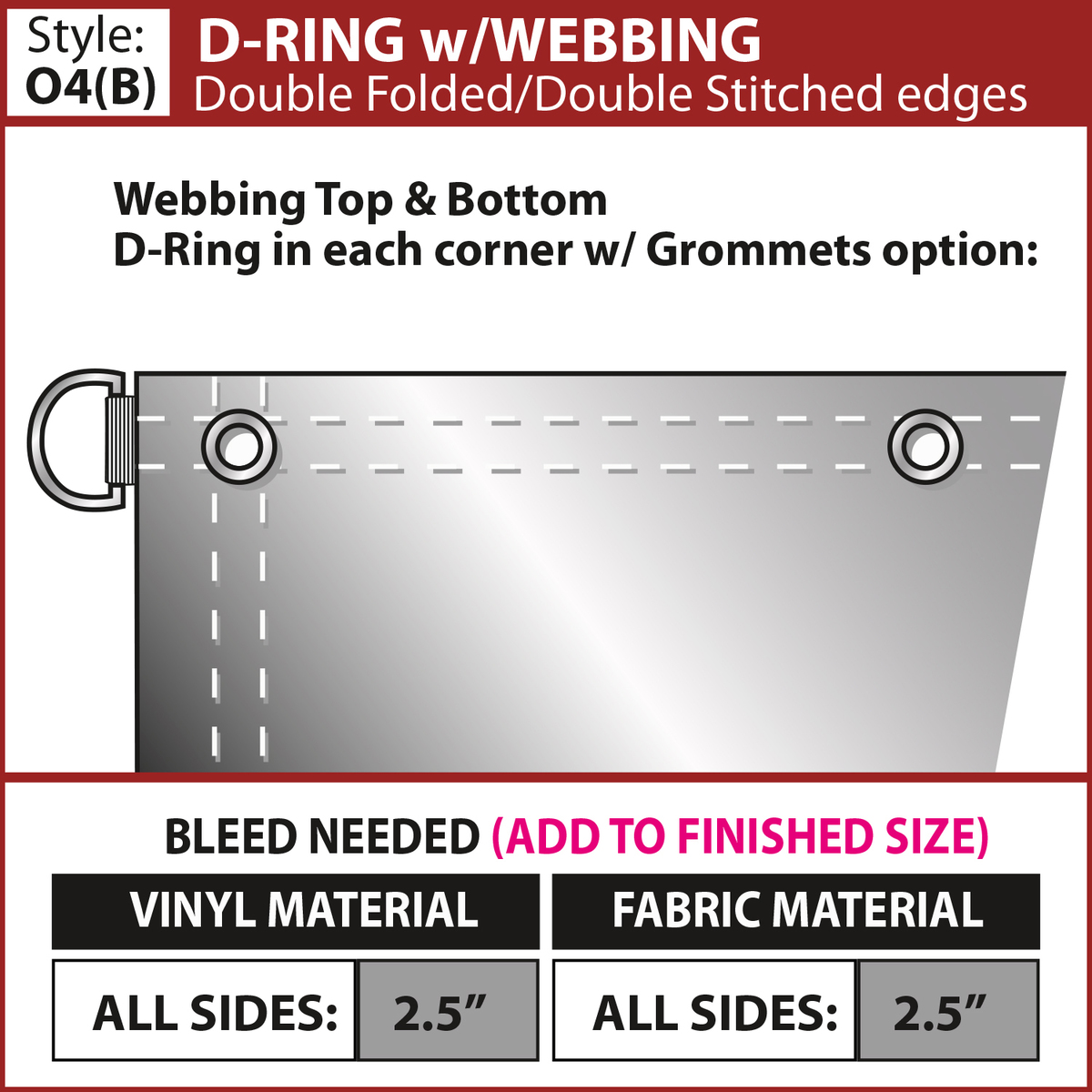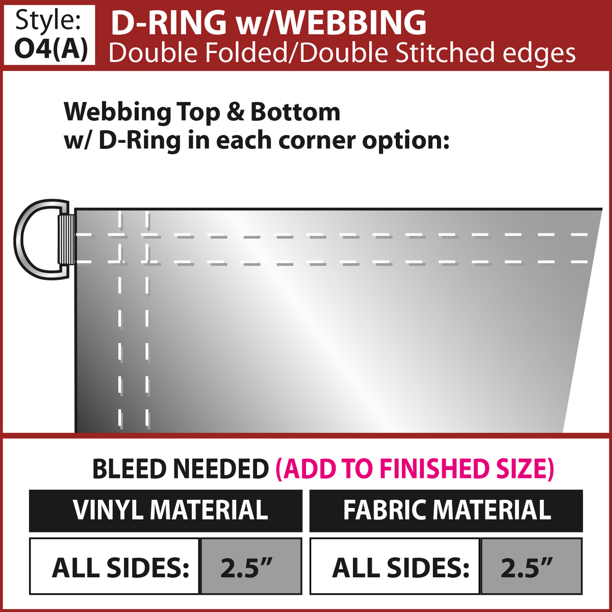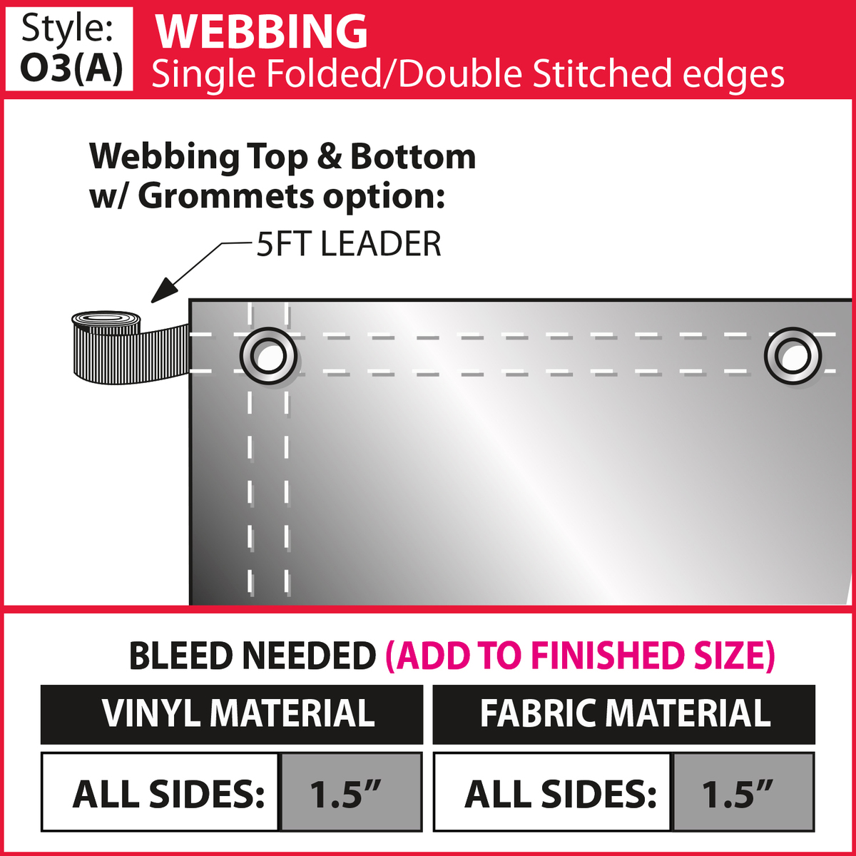 - Choose from multiple finishing styles (our standard 3" pole pocket will accommodate up to a 1.25" diameter pole)